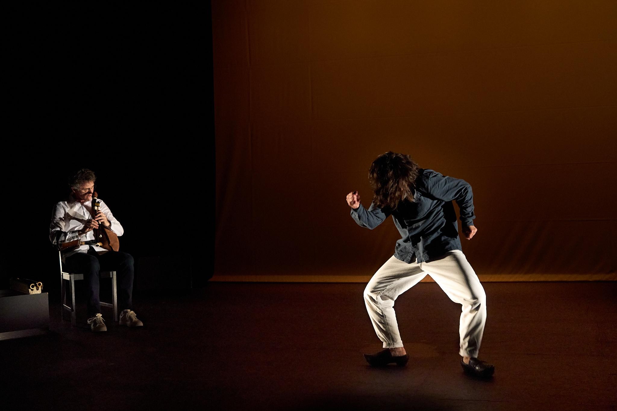 Drawing on the memory of her body and the dances of her childhood, Caroline Roche revisits the bourrée auvergnate – a traditional folk dance found in many Occitan village fêtes – and transforms it into fully contemporary movement. Between tradition and experimentation, Anon jogar ina bourreira — which translates to ‘We are going to play a bourrée’ – brings together two languages: that of a dancer and that of a musician, a daughter and her father.