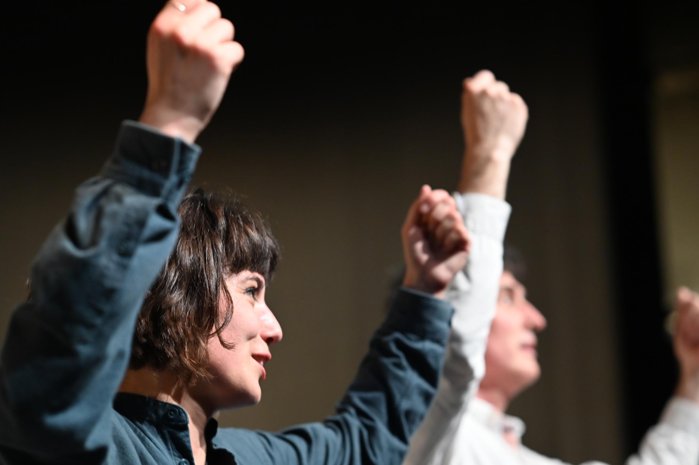 Far from their native Cantal and stepping onto the stage, the daughter’s dance meets the father’s cabrette – a traditional Auvergne wind instrument similar to the bagpipes – in a free, playful, and unrestrained dialogue. The duo unsettles conventions, explores transmission, desynchronisation, and hybridisation. Together, they push the boundaries of folklore to invent a new bourrée: vibrant, joyful, and emancipatory.